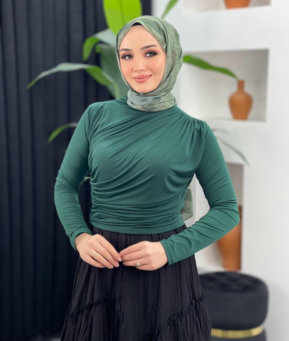 Büzgülü Bluz Zümrüt