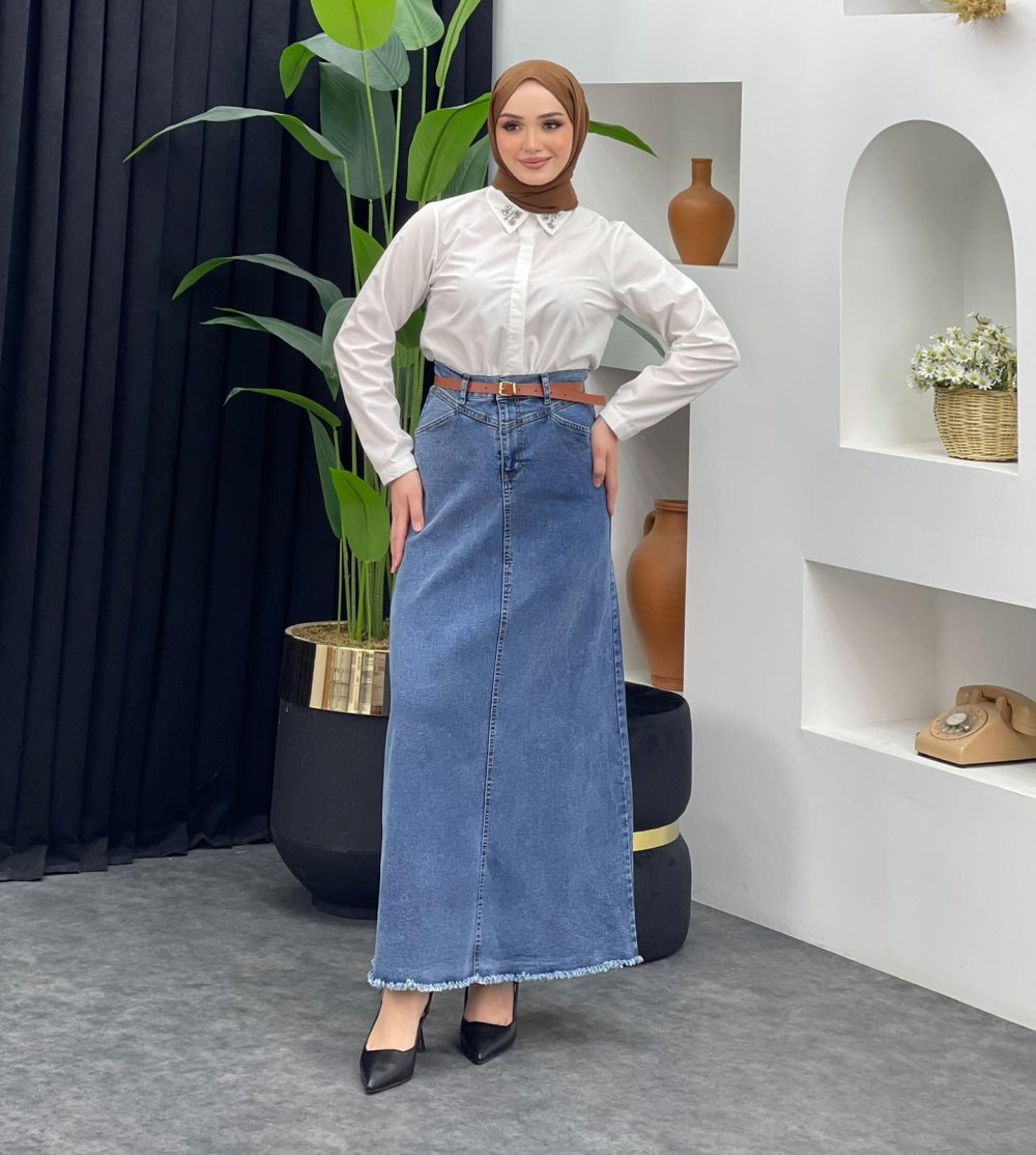 Emine Kot Etek Açık Mavi