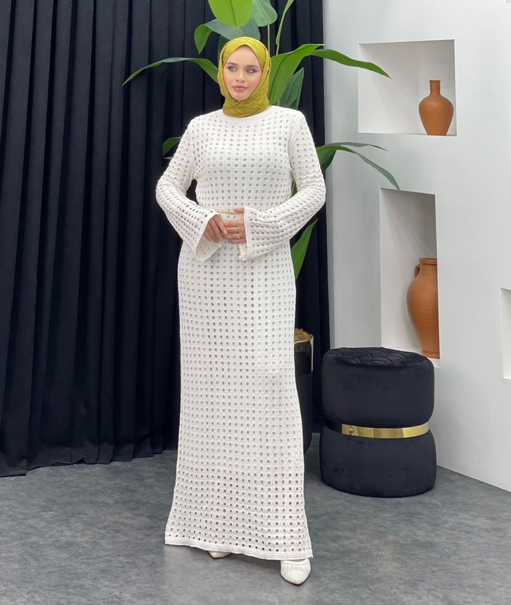 Fileli Elbise Beyaz