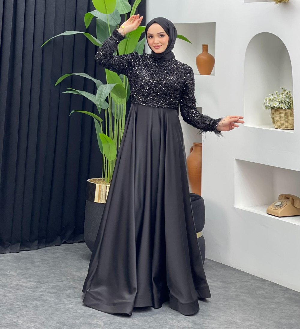 Pul Saten Abiye Siyah