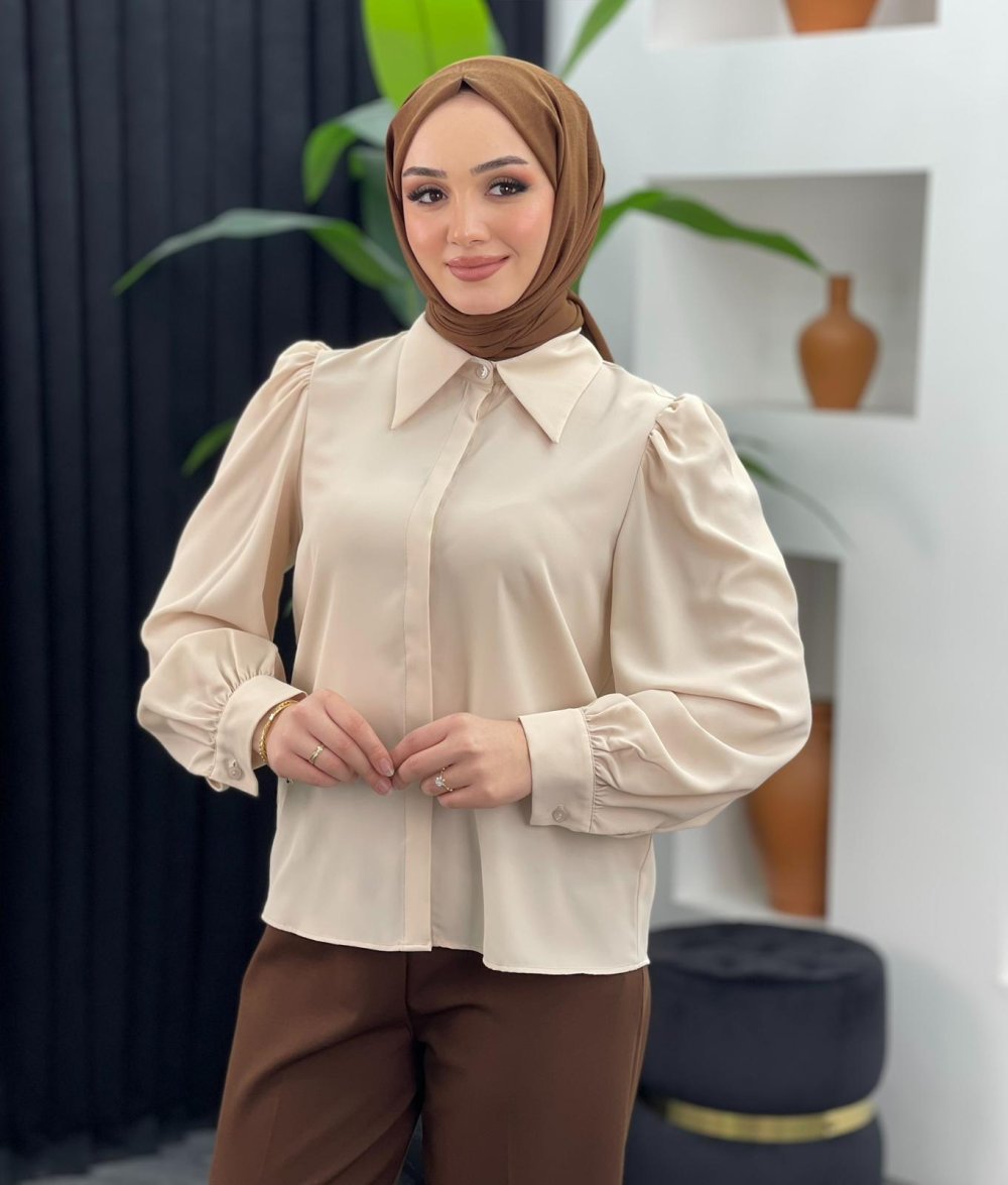 Selen Gömlek Bluz Krem