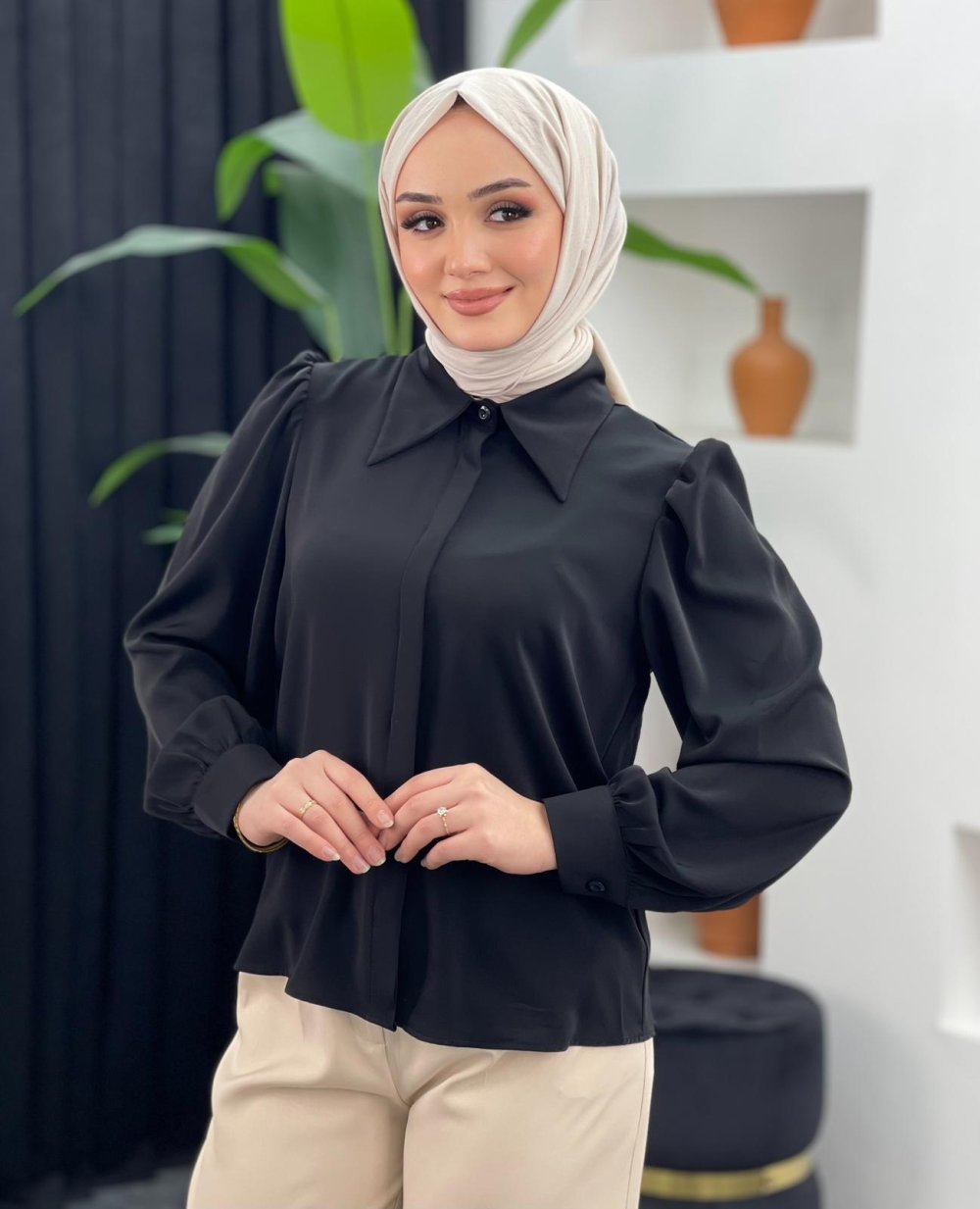 Selen Gömlek Bluz Siyah