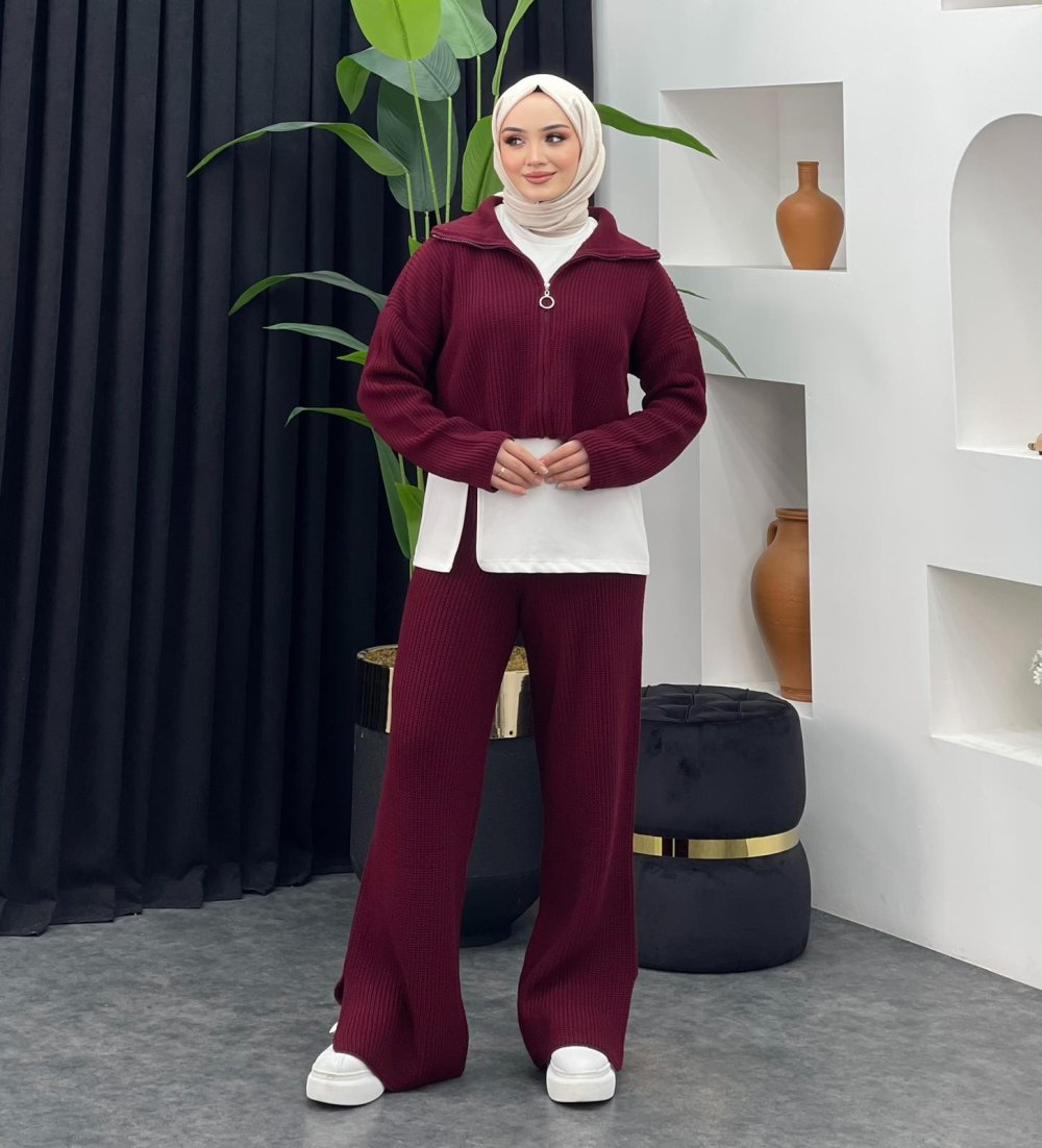 Seren Üçlü Triko Takım Bordo